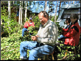 Kiteen reissun jälkeen oli vuorossa vihtatalkoot 19.6 ja lankojen värjäystä 9.7 Ponkkalan rannassa sekä rantailta Keskisen rannassa
