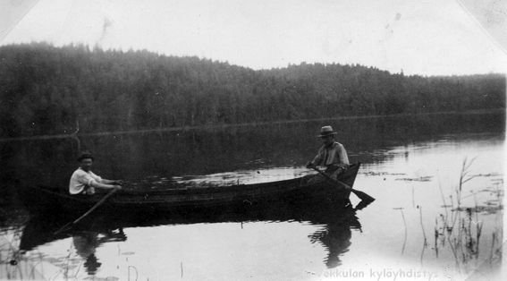 21 Langokset Kerpolan isäntä Hjalmar Ahlgren (19.11.1893 - 17.9.1964) soutamassa ja vaasalainen Einar (kutsumanimi Eino) Geijer (1894 - 1979) pitämässä perää.