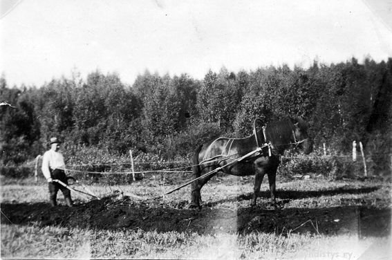 27 Kerpolan isäntä Hjalmar Ahlgren (19.11.1893 - 17.9.1964) kyntämässä Kerttu-hevosella,