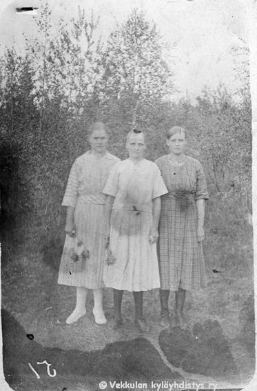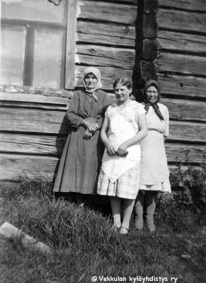 3 Vasemmalta Kerpolan vanha emäntä Heta-Stiina Ahlgren (o.s. Raidanlahti, 24.9.1866 - 10.3.1935), hyvänä laulajana muistettu naapuritalo Lepsalan (myöhempi nimi Järvenpää) tytär Lyyli Reijonen (s. n. 1920, myöhemmin Vainio) ja Kerpolan pikkukamarissa asunut kuppari-hieroja-lapsenpäästäjä Hilma Reth "Riitin Hilma"