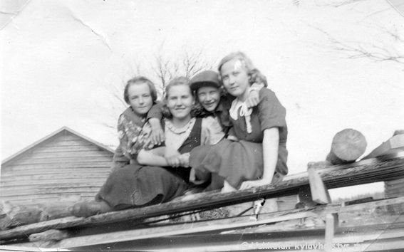 37 Vasemmalta Lepsalan naapuritalon eli Kerpolan tytär Kyllikki Ahlgren (myöhemmin Rantanen, s. 6.12.1927), Ahlgrenien kasvattitytär Toini Salonen (myöhemmin Sneck), Lepsalan (myöhempi nimi Järvenpää) poika Jaakko Reijonen ja naapuri Mäenpään talosta Aino Koskinen (myöhemmin Silvan).