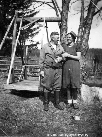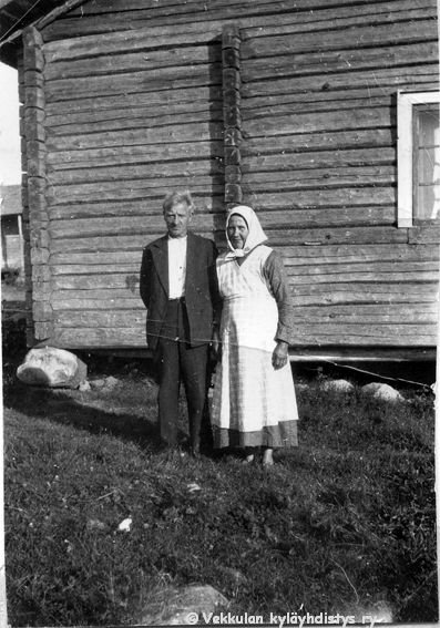 54 Kerpolan isäntä ja emäntä, aviopari Hjalmar (19.11.1893 - 17.9.1964) ja Olga (o.s. Peltonen, 12.4.1901 - 12.1.1986) Ahlgren kotinsa Kerpolan pihassa
