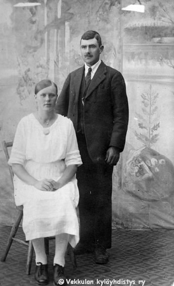 41 Olga (o.s. Peltonen, 12.4.1901 - 12.1.1986) ja Hjalmar (19.11.1893 - 17.9.1964) Ahlgren kuvaamossa otetussa muotokuvassa.