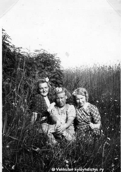 56 Kerpolan tytär Kyllikki Ahlgren (myöhemmin Rantanen, s. 6.12.1927), Maire Ilkka ja Vaasasta vierailulla oleva Kyllikin serkku Marjatta Geijer (myöhemmin Rantamäki, s. 1925 tai 1926) istuvat niityllä