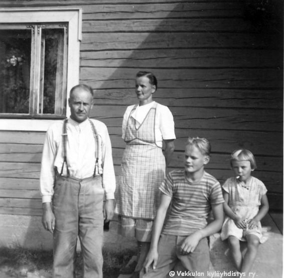 Saunaa ja navettaa ei uudessa paikassa ensi hätiin ollut, mutta pian isä rakensi nekin ja äiti sai hakea lehmänsä Lamminmäen navetasta omaan parteen. Salosten neljän hengen perhe eli äiti Lempi (1914- 2005), isä Timo (1911-1993) ja sisko Vieno (s. 19 ?) asettuivat elämään tavallista vekkulalaista ”mökkiläisen” elämää. Isä kävi talvisin hakkuilla pokasaha olalla ja äiti lähetti lapset aamuisin 6 km:n koulumatkalle ja hoiteli muutaman lehmän ja mullikan karjan. Hevosta Korpelassa ei koskaan ollut, vaan se saatiin lainaksi Lamminmäestä.
