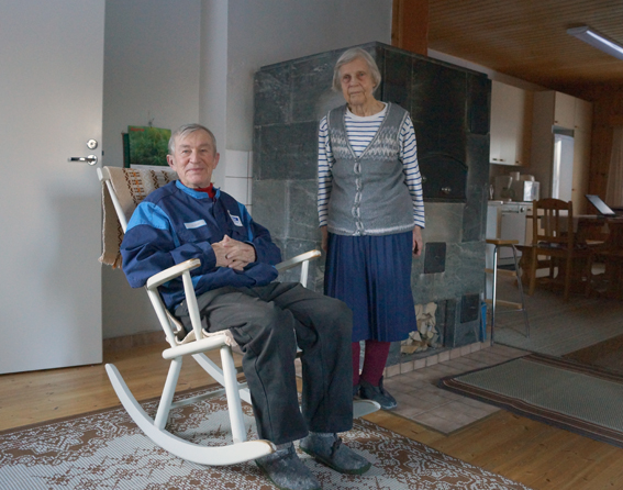 Anton ja Alma Partanen viihtyisässä Lintupuron tuvassa tammikuussa 2014.