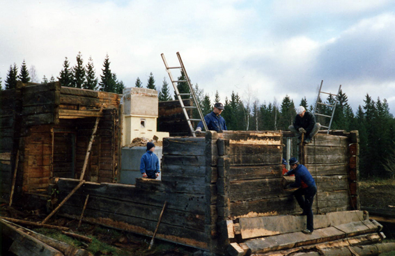 -Sehän oli kauhean hauskaa hommaa vaan se purkaminen ja kasaaminen, ei tullut mieleenkään käyttää traktoria apuna. Tukkisaksilla niitä käänneltiin ja köysien ja kaljujen avulla kiskottiin, Matti muistelee. Rakentaminen on hänellä ollut aina lähellä sydäntä ja hirsien sovittelu tämän taiteenlajin ydintä.